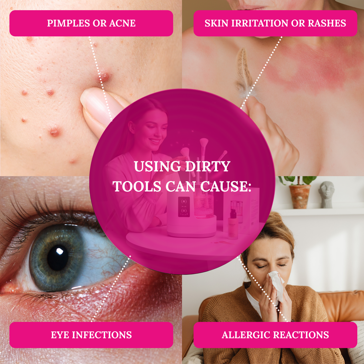 Makeup sponges and brushes often carry germs and microbes that can trigger breakouts, redness, and eye discomfort. Cleaning and drying them properly helps maintain hygiene and keeps your skin calm and protected.